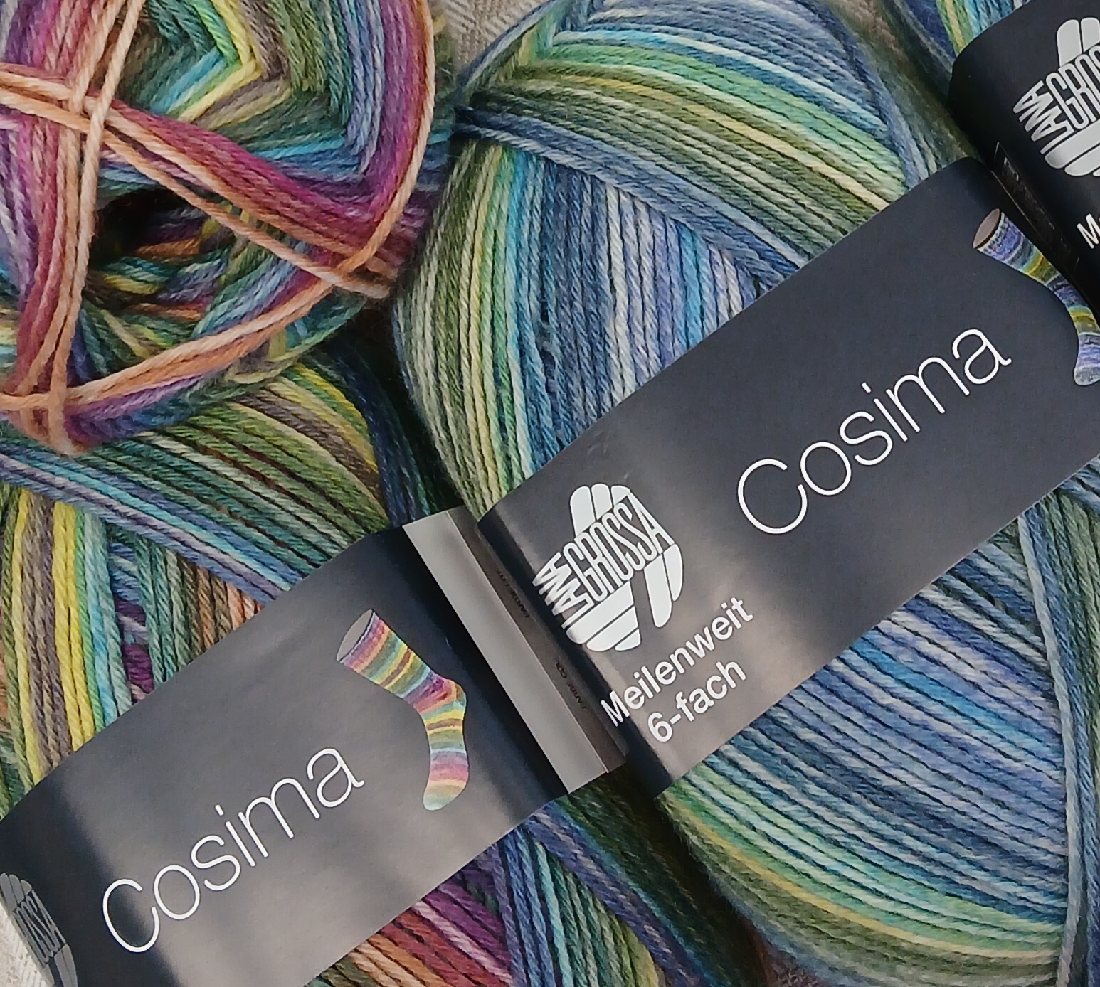 Lana Grossan 6-säikeisestä sukkalangasta saatavilla myös nämä kirjavat ja kivasti raidoittuvat vaihtoehdot. Lanka on konepestävä ja sopii sukkien lisäksi myös muihin neuleisiin.